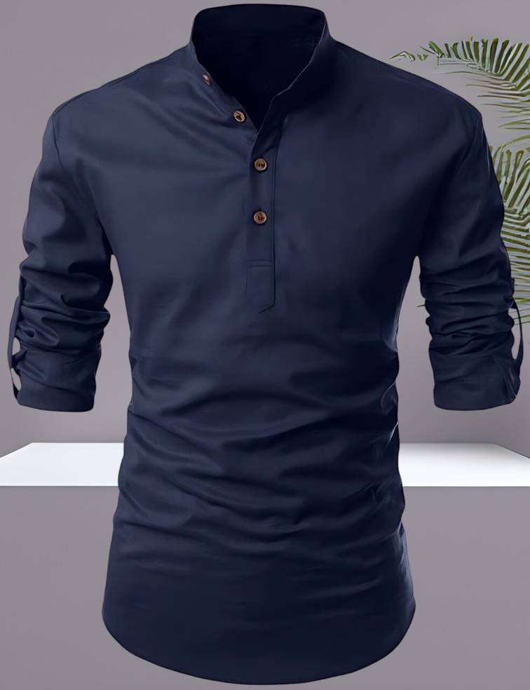 Men Solid Cotton Blend Straight Kurta (Blue)