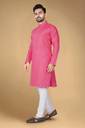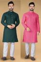 LYPLO Men Solid Straight Kurta (Green, Pink)