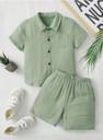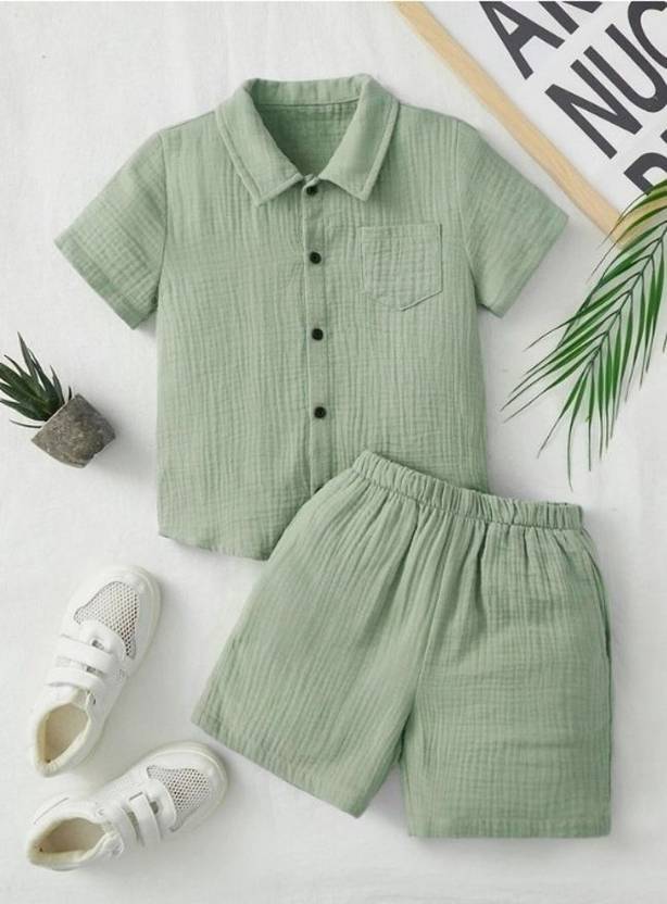Made from soft and breathable cotton fabric Half-sleeve shirt with front buttons and pocket Matching elastic waist shorts for easy wear Lightweight and comfortable for all-day use Perfect for daily wear, playtime, and outings