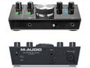 With the M-Audio M-Track 2X2, you can create flawless 24-bit/192kHz studio-quality recordings with an intuitive and easy-to-use audio interface. Boasting an elegant pro-grade metal chassis with a large central volume knob, the M-Track 2X2 features all-new transparent low-noise ‘Crystal’ pre-amps and pristine A/D converters that deliver the highest audio performance in its class. The M-Track 2X2 enables you to record up to two channels at once with its dedicated XLR+1/4” balanced combo input, and an all-new 1/4” instrument input that has a specially designed gain and impedance stage to provide the most accurate representation of a guitar or bass plugged directly into the interface. This audio interface connects to your Mac or PC via a standard USB or USB-C port using one of the two included cables. This premium Hi-Speed USB connection combined with the USB/Direct balance knob enables you to have zero-latency monitoring of your inputs, making the recording process easier than ever. The overall combination of professional audio performance, easy-to-use features, and the included software bundle that provides everything you need to start recording now makes the M-Track 2X2 the best and only choice for solo artists. Technical Specs All specifications are measured at 20,000 Hz bandwidth. Specifications are subject to change without notice. MIC INPUT 1 (balanced XLR) Frequency Response: 20 Hz – 20,000 Hz (+0.1 dB) Dynamic Range: 104 dB (A-weighted) Signal-to-Noise Ratio: 104 dB (+1.0 dBu, A-weighted) THD+N: 0.003% Preamp EIN: -128 dBu (max gain, 150 ? source, A-weighted) Max Input Level: +1.5 dBu Gain Range: 55 dB LINE INPUT 1 (balanced 1/4” [6.35 mm] TRS) Frequency Response: 20 Hz – 20,000 Hz (+0.05 dB) Signal-to-Noise Ratio: 101 dB (1 kHz, +4 dBu, A-weighted) THD+N: 0.003% Max Input Level: 16 dBu Gain Range: 55 dB INSTRUMENT INPUT 2 (unbalanced 1/4” [6.35 mm] TS) Frequency Response: 20 Hz – 20,000 Hz (+0.05 dB) Dynamic Range: 100 dB (A-weighted) Signal-to-Noise Ratio: 102 dB (+ 4 dBu, A-weighted) THD+N: 0.004% Max Input Level: 6 dBu Input Impedance: 1 M? Gain Range: 24 dB MAIN OUTPUTS, L and R (impedance-balanced 1/4” [6.35 mm] TRS) Frequency Response: 20 Hz – 20,000 Hz (+0.06 dB) Dynamic Range / Signal-to-Noise Ratio: 102 dB (A-weighted) THD+N: 0.005% Max Output Level: +7 dBu (1 kHz, -1 dBFS) HEADPHONE OUTPUT (1/4” [6.35 mm] TRS) THD+N: 0.005% Output Impedance: 10 ? GENERAL Power: USB-powered Dimensions(width x depth x height): 6.0” x 2.8” x 7.8” Weight: 2.0 lbs Box Contents M-Track 2X2 USB-C-to-USB-C Cable USB-C-to-USB-A Cable Software Download Cards User Guide Safety & Warranty Manual