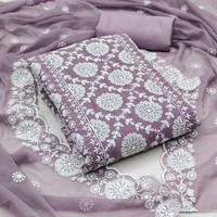 Featuring an intricately embroidered pattern, this women's salwar suit material combines beauty and elegance in its design. The detailed embroidery adds a touch of sophistication and enhances the overall aesthetic of the outfit. The stylish and attractive pattern ensures that this salwar suit stands out, making it a desirable choice for various occasions. Each stitch and motif are carefully crafted, reflecting a high level of artistry and attention to detail.