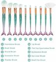 M H Collection Mermaid Makeup Brushes Set, Beauty 10 pcs Mermaid Makeup Brush Set Chubby Fish Soft Nylon Bristles Beauty Brushes Kit Foundation Blending Blush Concealer Cosmetic Tools Washing Board&Lash Brush (Pack of 10)