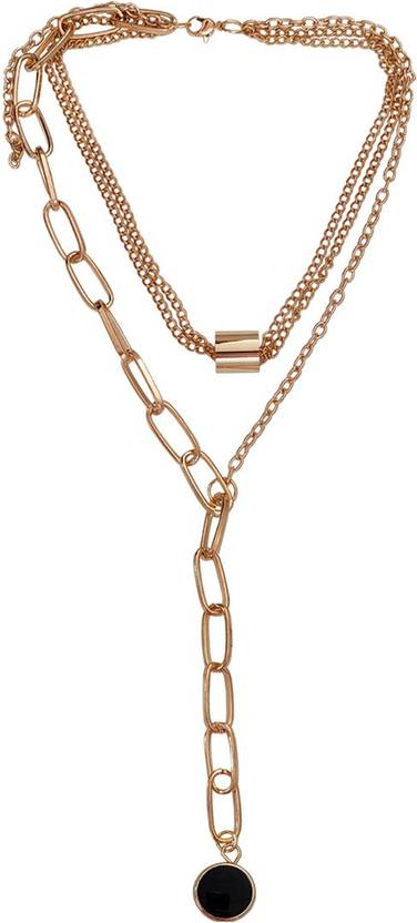 Fashionable Western Jewellery Multilayered Black Stone Locket Gold Plated Alloy Chain Necklace Chain