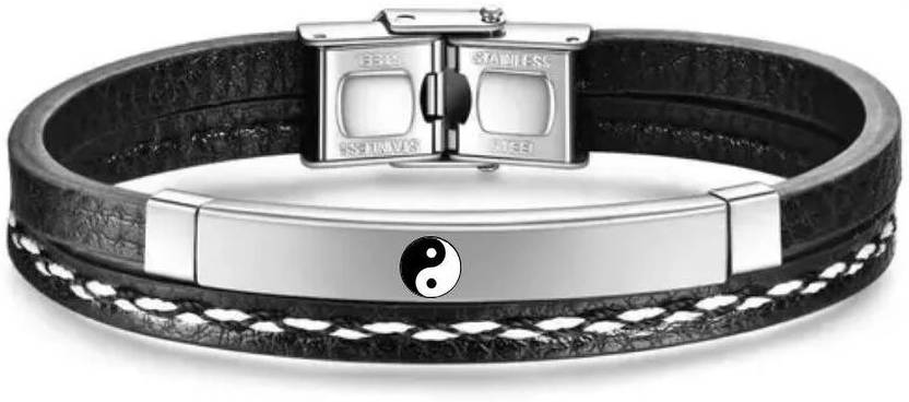 Yin Yan Leather Layered Bracelets for Mens Women Silver SBr2025203