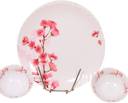 M plastic representing the dinner plate set.the dinner set made by melamine material. flower printed with the white color round plate. will be received a full plate set of 6 plates and 12 Bowl. the melamine product not harmful to health.