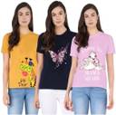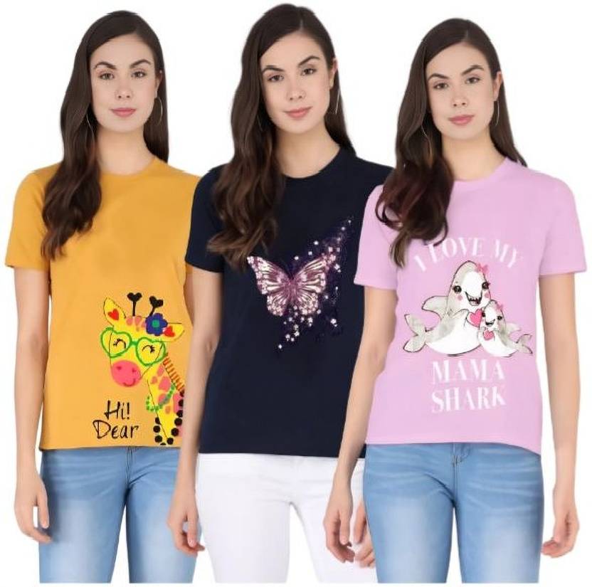 M Queen Girls Graphic Print Cotton Blend Regular T Shirt (Multicolor, Pack of 3)