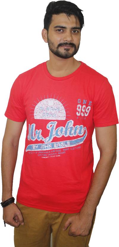 M|S Men Printed Round Neck Cotton Blend Red T-Shirt