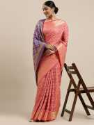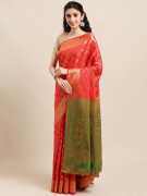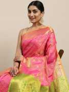 M.S.RETAIL Woven Banarasi Silk Blend Saree (Pink, Light Green)