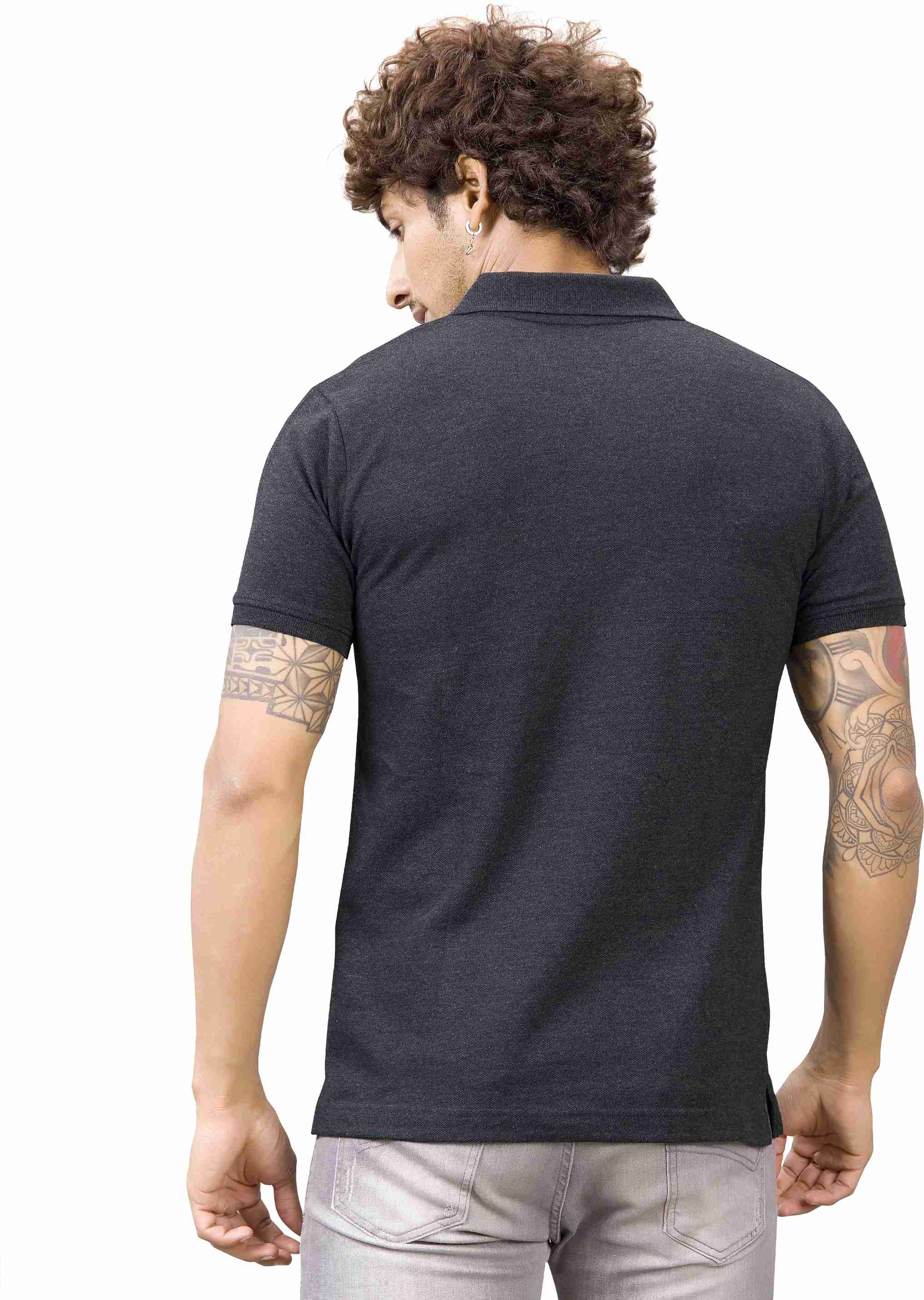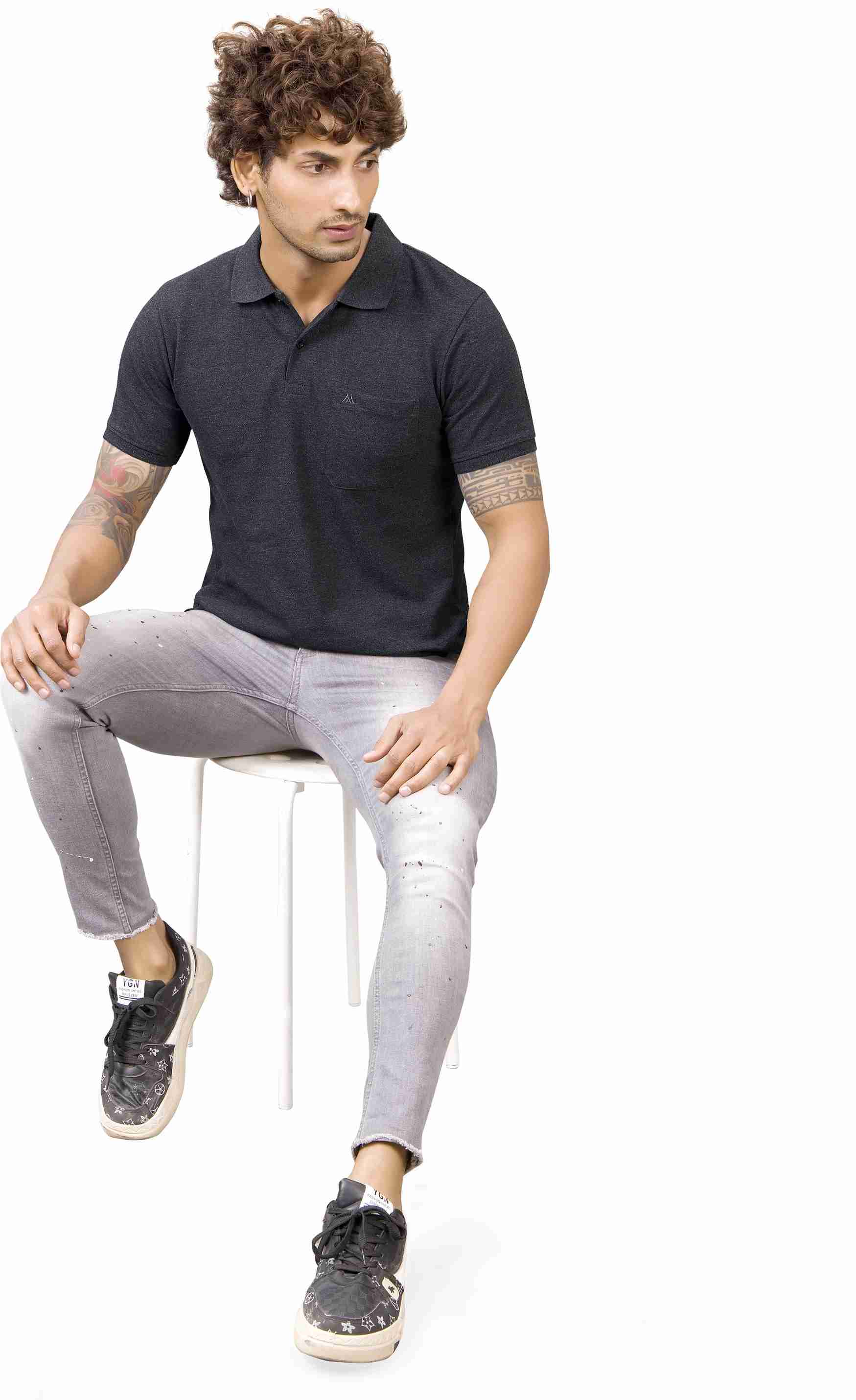 Men Solid Polo Neck Pure Cotton Black T-Shirt
