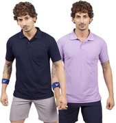 m2hit Pack of 2 Men Solid Polo Neck Cotton Blend Black T-Shirt