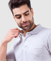 m2hit Solid Men Polo Neck Grey T-Shirt