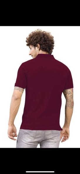 m2hit Men Solid Polo Neck Cotton Blend Maroon T-Shirt