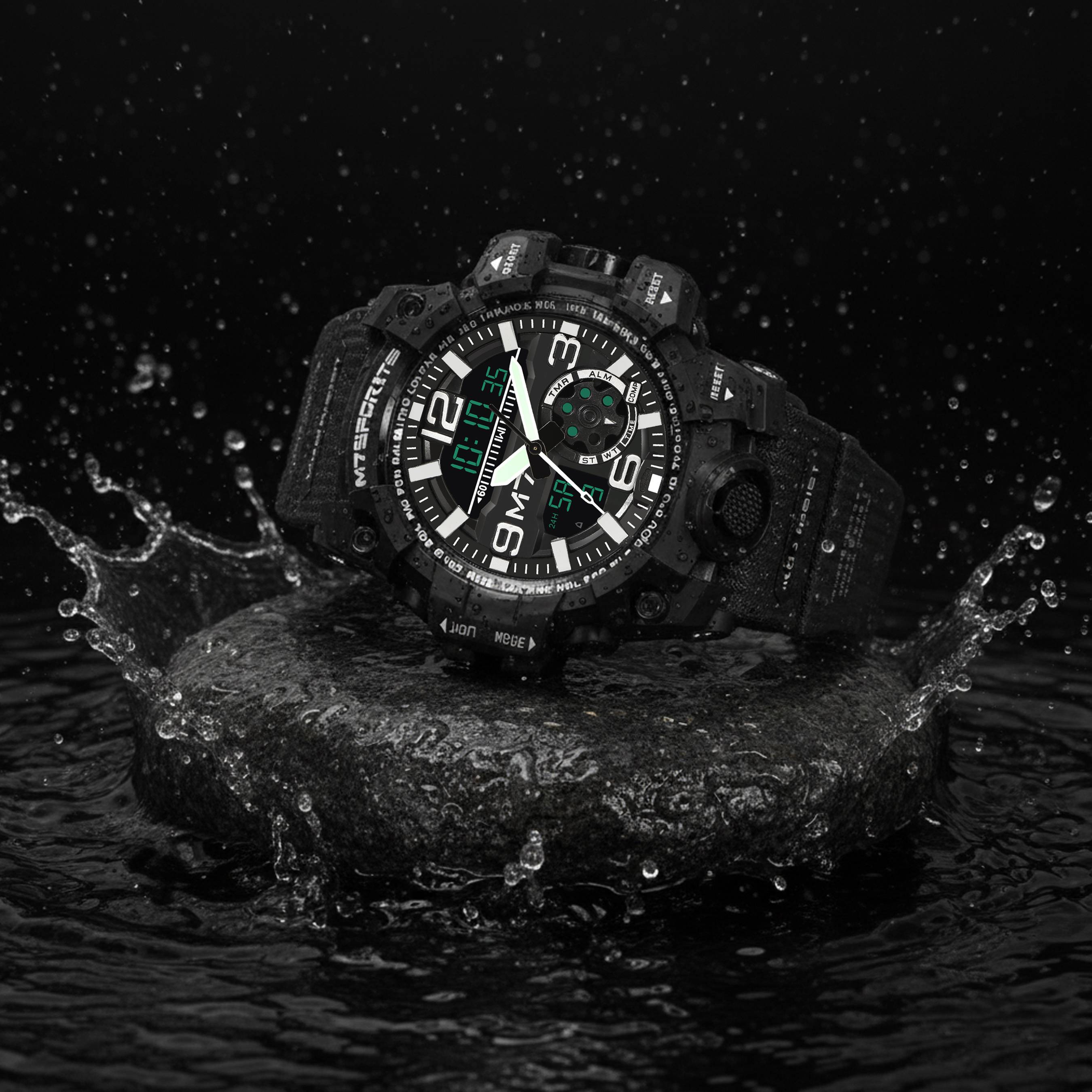 Unleash your power with the M7 Sports 1327 Digital Analog Watch — the perfect fusion of rugged design and advanced functionality. Built for athletes, adventurers, and style enthusiasts alike, this watch features a dual-time display, shock-resistant build, and 50M water resistance for all-weather performance.
