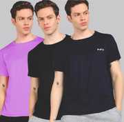 M7 Solid Men Round Neck Black, Light Blue, Maroon T-Shirt