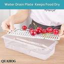 Owing to their water drainage, these containers come with a separate water drain plate. This feature is particularly beneficial when storing items like fish, meat, vegetables, and fruits. Additionally, it prevents the liquids from these items from dripping into your refrigerator and causing a mess. Moreover, it's an effective measure to hinder the growth of bacteria, keeping your fridge and its contents hygienic.