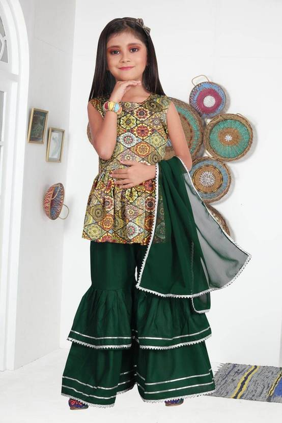 Ma Brahmani Enterprise Girls Party(Festive) Tunic Pyjama (Multicolor)