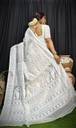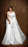 Thanks to its Jamdani style, this women's saree presents a delicate woven pattern that enhances its visual appeal. The intricate weaving techniques ensures the pattern captures traditional artistry while maintaining a light, airy appearance. In addition, the fine detailing allows the pattern to stand out gracefully on the fabric, creating a refined and charming look.