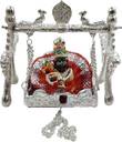 MAA MANSA DEVI NAND Laddu Gopal Swing Palana Krishna Jhula With Simple Dress (4 Inch) Silver Decorative Showpiece - 10.16 cm (Silver, Silver)