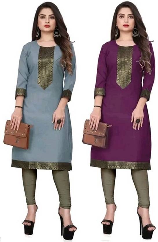 Maa Meladi Creation Women Solid Pure Cotton Straight Kurta (Multicolor)
