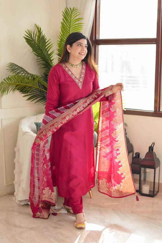 Self Design Kurta, Trouser/Pant & Dupatta Set