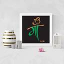 Maa Symbol - Typography White Framed Wall Hanging Art Print for Office , Home, Reading Room Décor ( 8x8 ) Inch Paper Print (8 inch X 8 inch)