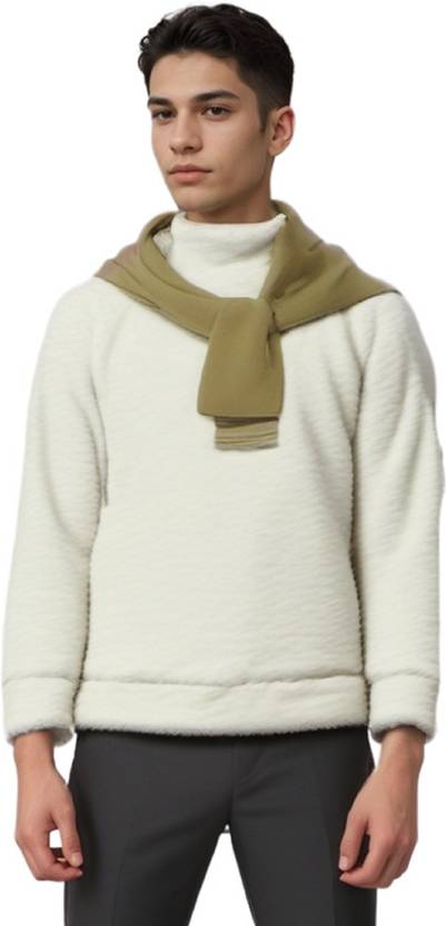 Men Printed Collared Neck White Sweater