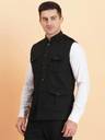 The vest features patch pockets with button flaps, adding both style and functionality.