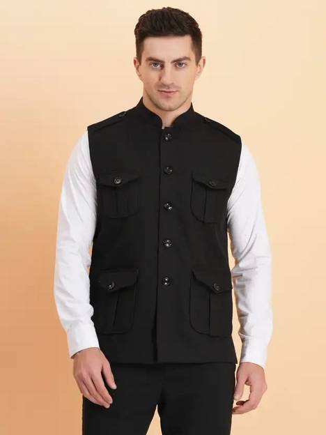 Elevate your look with this stylish navy blue vest, designed for both comfort and versatility. Crafted from durable fabric, it features a sleek, sleeveless design that provides a clean and modern silhouette. The vest is equipped with functional button-down closures and large patch pockets with button flaps, offering both style and practicality. Epaulette details on the shoulders add a touch of military-inspired flair, making it an ideal choice for casual, business-casual, or semi-formal occasions. Pair it with shirts, t-shirts, or trousers for a smart, polished look.