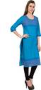 MAAI Women Block Print Cotton Blend Straight Kurta (Blue)