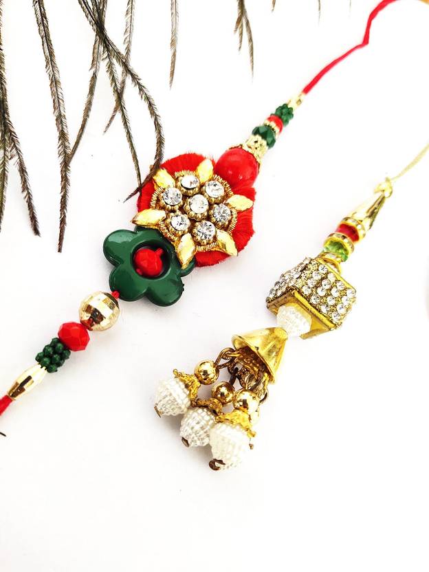 Bhaiya Bhabhi Rakhi-2021-6Au075 Mauli Thread, Kundan, Assorted Rakhi, Lumba Set (2 Unit)