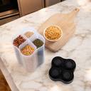 4-in-1 Versatile Storage Solution: This innovative storage container features four separate sections in a single jar, allowing you to store different foods—like grains, pulses, snacks, and dry fruits—without mixing. Perfect for maximizing organization in your kitchen.