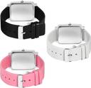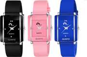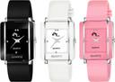 Pack Of 3 Kawa Square Dial Multi Color PU Strap Girls and ladis