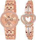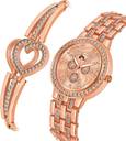 Rose Gold Strap and Fancy Bracelet Combo Watches For Women and Girls