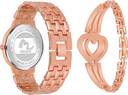 Pack of 2 Rose Gold Dial Metal Strap and Diamond Studded Heart Fancy Bracelet