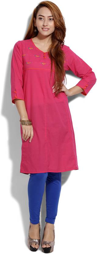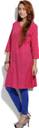 Women Solid Cotton Blend A-line Kurta (Pink)