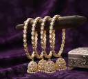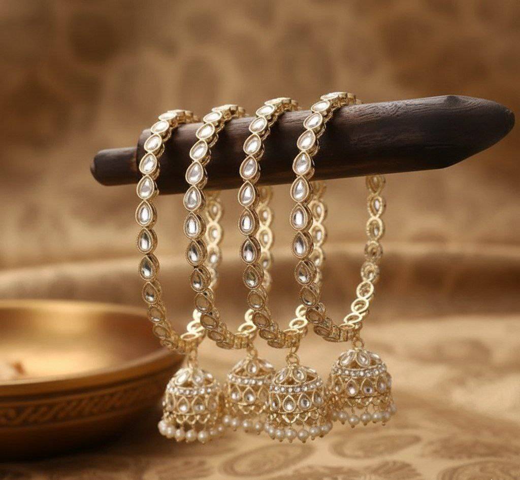 Gold Kundan Bangles with Jhumka for Women | Traditional Bridal & Party Wear Designer Bangle Set