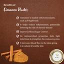 • Anti-inflammatory Properties: Cinnamon powder is known for its ability to reduce inflammation in the body, which can help with conditions like arthritis or joint pain., Rich in Nutrients: It contains important nutrients like fiber, calcium, iron, and manganese, contributing to overall health and wellness., Natural Sweetener: Due to its natural sweetness, cinnamon powder can be used as a sugar substitute in recipes, making it a great option for those looking to reduce sugar intake., Heart Health: Regular consumption of cinnamon powder may contribute to heart health by helping to reduce cholesterol levels and improve circulation., Versatile in Cooking: Apart from its use in traditional Indian cuisine, cinnamon powder can be added to smoothies, oatmeal, baked goods, and even savory dishes for a unique flavor.