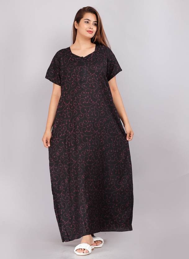 We offers this delicately rich long Printed nighty dress for a sweat free comfort all night long. This a perfect pick for women who are fond of stylish nightwear. This short sleeved nighty is a must have for your night wear needs. Made with 100% soft Cotton to keep you cool all throughout.