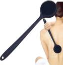 Our back brush is a great choice for exfoliating. It is made of food grade silicone; it can achieve massage effect, promote blood circulation and relieve fatigue. Introduction to the use of the back scrubber: Step 1: Bath in warm water for about three minutes Step 2: Wet the brush head with warm water Step 3: Apply shower gel to the brush head Step 4: Gently pull out some foam by hand Step 5: Clean your body with the brush Step 6: Rinse the brush head after use, hang it up and dry it. back scrubber double-side brush head design, 180 silicone soft hairs on the front can be bathed, effective deep exfoliation, 93 massage particles on the back can massage, capable to massaging neck and calf, effectively relieve fatigue. Silicone shower brush made of safe and non-toxic advanced food grade silicone with embedded nylon, hard to get mildewed and bristles are not easy to falling. soft and elastic, long-term use is not easy to deform, withstand extensive use without splitting or cracking, it provides good exfoliation without rubbing skin off, 100% body-safe, odorless and durable in use. The silicone handle is over 15” long, it’s more convenient and labor-saving, slip-proof groove at the end of the handle, and you don't have to worry about slipping from your hand
