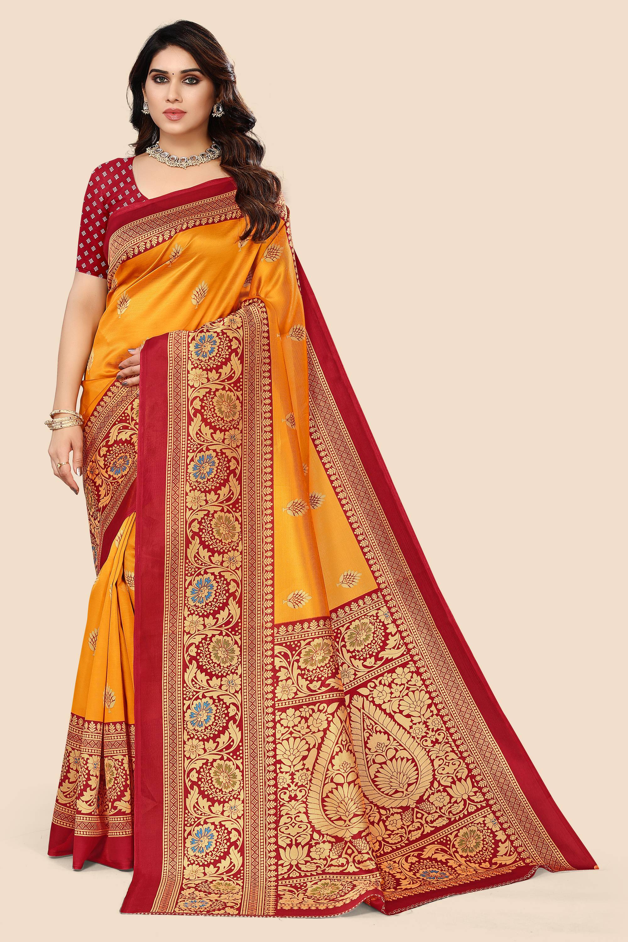 One of the most graceful costumes made from unstitched fabric-the saree-the much-loved choice for most Indian women can be worn in so many different ways. With the right material and drape, it can accentuate the beauty of women of all ages and forms. Be it a festival or a wedding, sarees are a hot favorite worldwide, and it’s easy to see why. Sarees give you the opportunity to give a modern touch to traditional Indian attire.Mysore Silk is an instantly recognizable sheer, lightweight, that is popular for outfits that require a clingy and flowing look. This material also drapes well, making it perfect for sarees. No matter what season it is, you can wear a Mysore Silk saree in autumn, winter, spring, and summer.This saree with its classy colors and unique designs makes it versatile for both casual and formal occasions – these sarees will look perfect at religious ceremonies, formal occasions, celebrations, and traditional get-togethers. Business and even personal parties nowadays see women in dapper sarees. Jewellery to wear with a saree can range from one statement piece to a full feast of small earrings, necklace, nose ring, and bangles. so ladies what are you waiting for just purchase it and designed your saree with accessory which you like most