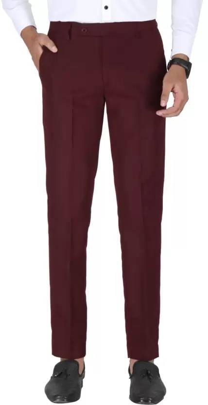 Men Regular Fit Maroon Viscose Rayon Trousers