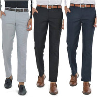 Boasting a mid-rise fit with a hook and button closure, zipper fly, and belt loops, these trousers provide a comfortable and adjustable fit. The regular fit and flat front design allows for easy movement and a streamlined appearance. Moreover, with up to two slant pockets and two back pockets featuring attached buttons, there is ample space for essentials while maintaining a neat silhouette. Hence, whether you are heading to a day at the office or a weekend outing, these details ensure comfort and functionality.