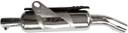 The Hunter 350cc Chrome Silencer is a premium exhaust option designed to enhance Royal Enfield motorcycles' aesthetic appeal and performance, particularly the Hunter 350. Crafted with a focus on style and functionality, this chrome silencer adds a touch of sophistication while delivering an improved riding experience. Design and Aesthetic: The chrome finish of the silencer not only exudes a classic, polished look but also complements the timeless appeal of Royal Enfield motorcycles. Its sleek and ergonomic design seamlessly integrates with the bike's overall structure, offering a bold and premium appearance. The high-quality chrome plating ensures durability and resistance to corrosion, making it a long-lasting choice for riders. Performance: Engineered for optimal functionality, the Hunter 350cc Chrome Silencer provides a balanced sound profile—rich, throaty exhaust notes without being overly loud. This enhances the signature Royal Enfield riding experience, giving riders a sense of power and refinement. The design supports efficient exhaust flow, potentially improving engine performance and fuel efficiency. Build Quality and Durability: Made from robust materials, this silencer is built to withstand challenging riding conditions, including long journeys and rugged terrains. Its precision engineering ensures minimal vibrations and reliable performance over extended use. Compatibility and Installation: The silencer is designed for the Hunter 350, ensuring a perfect fit. Installation is straightforward, with mounting points aligned to the bike’s chassis, making it a hassle-free upgrade for riders.