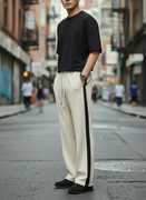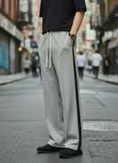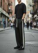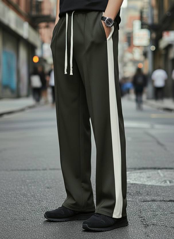 These track pants are designed for comfort and style, featuring a white drawstring for an adjustable fit and small reflective strips on the lower legs for added visibility. Made from a smooth, athletic fabric, they are ideal for workouts, casual wear, or lounging. The design is sleek and minimalist, making them versatile for various occasions.