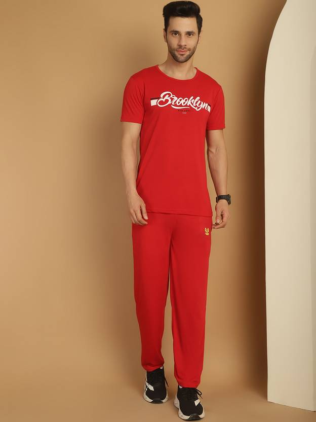 MACK JONNEY Men Printed Red Top & Pyjama Set