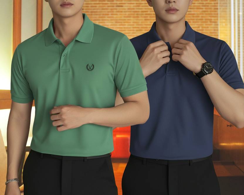 Pack of 2 Men Solid Polo Neck Cotton Blend Multicolor T-Shirt