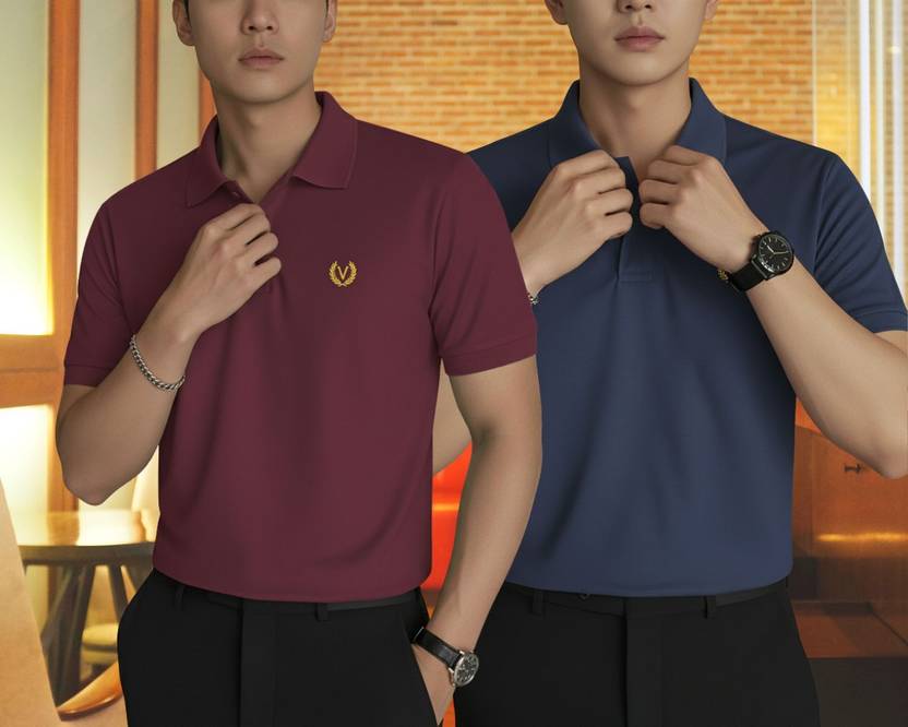 Pack of 2 Men Solid Polo Neck Cotton Blend Multicolor T-Shirt