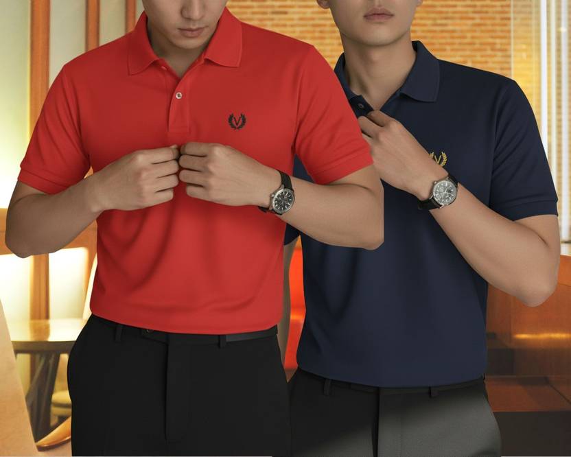 Pack of 2 Men Solid Polo Neck Cotton Blend Multicolor T-Shirt