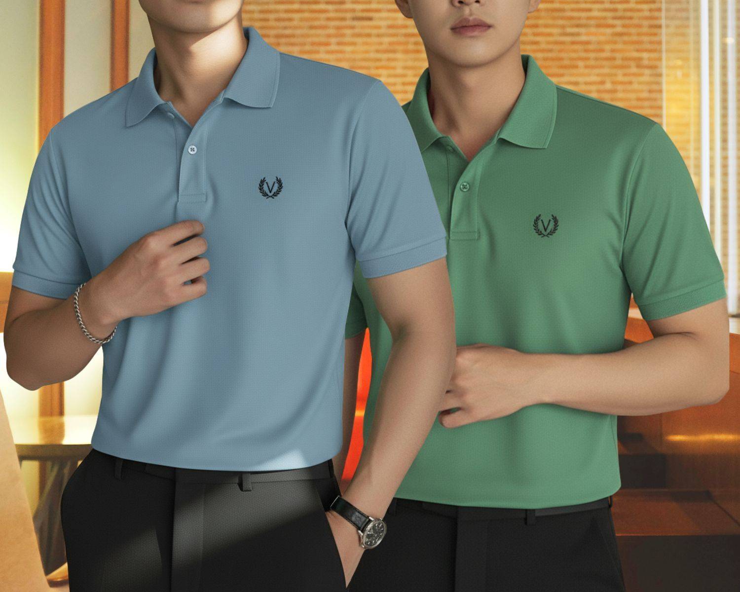 Pack of 2 Men Solid Polo Neck Cotton Blend Multicolor T-Shirt