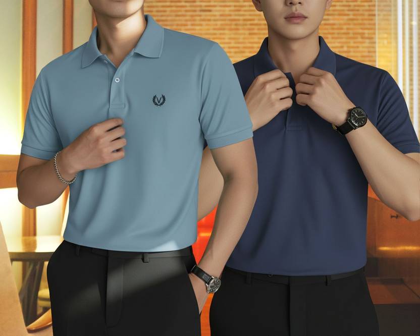 Pack of 2 Men Solid Polo Neck Cotton Blend Multicolor T-Shirt